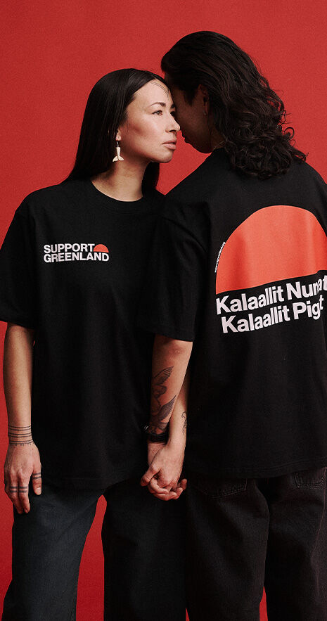 De Support Greenland T-shirts op deze pagina zijn ontwikkeld in samenwerking met de Nationale Organisatie voor Groenlanders in Denemarken (UAGUT). De volledige winst uit de verkoop van deze T-shirts gaat rechtstreeks naar UAGUT en ondersteunt hun werk voor Groenlands weg naar onafhankelijkheid.